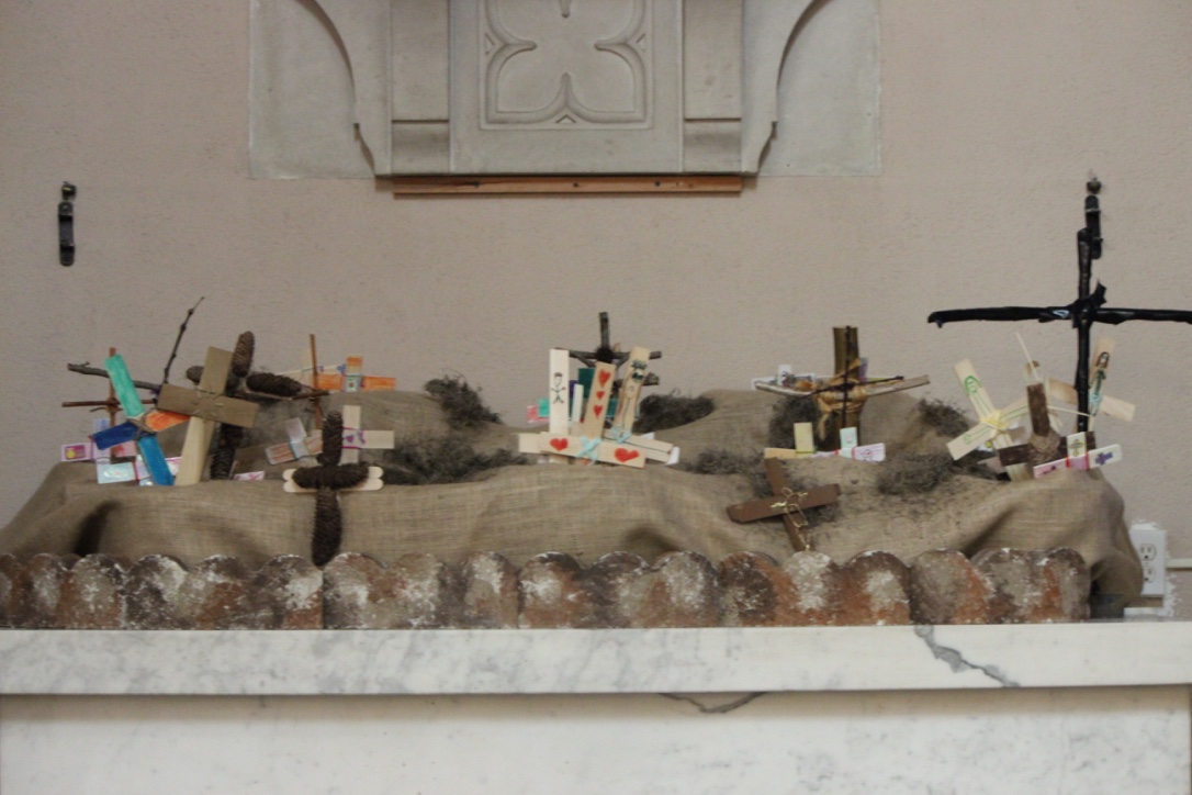 At the beginning of Lent our Pastor invited parishioners to construct a cross at home and bring it to the Church to be placed on the left or right of the Altar. He encouraged us to bring our crosses to Our Lord both the physical one and also our spiritual crosses.